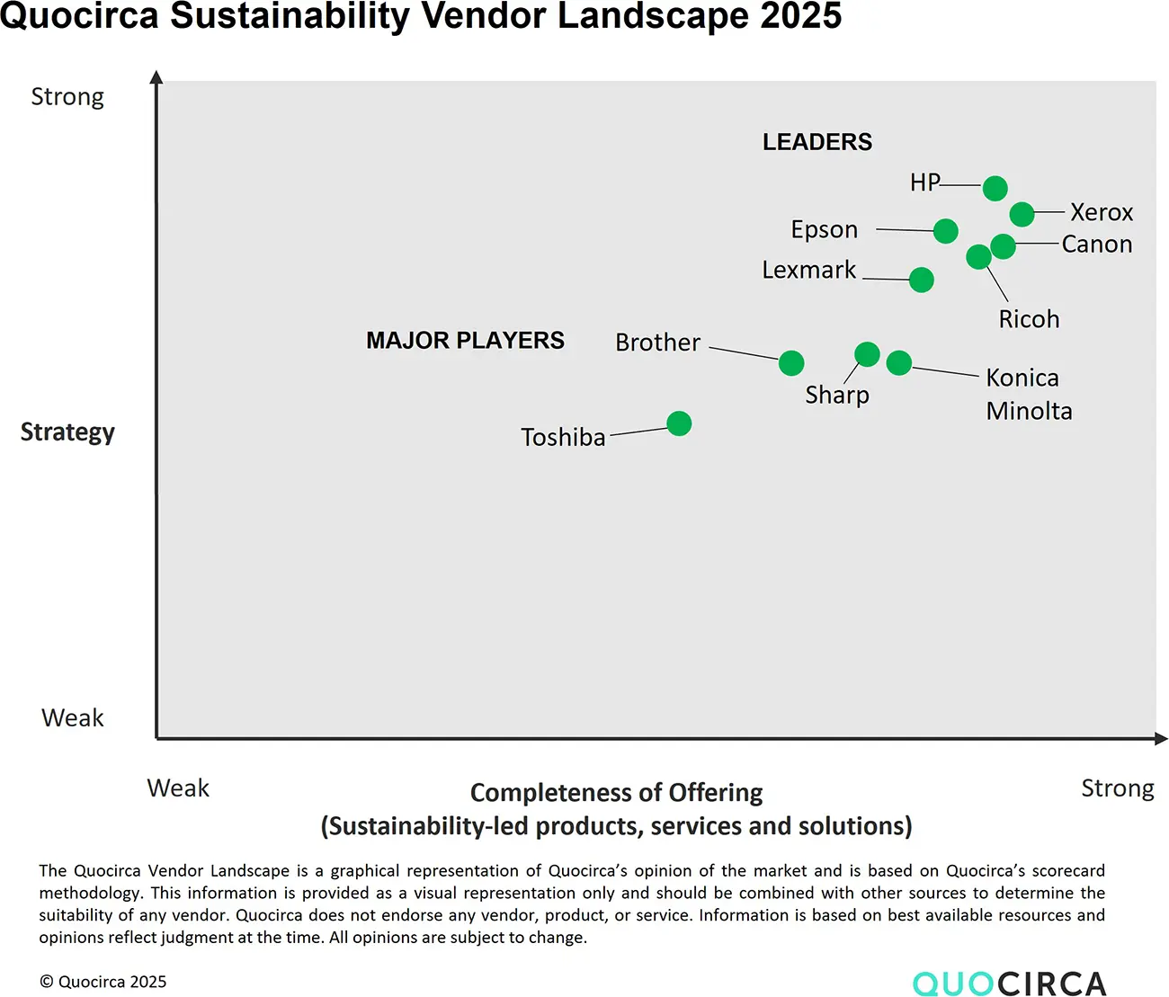 The independent study highlights Ricoh's comprehensive approach to sustainability, combining measurable carbon reduction, circular economy innovation, and data-driven services that help customers achieve their own sustainability goals. Based on Quocirca's scoring methodology, the market research firm positions Ricoh among the office print industry's top performers for the completeness of its sustainability-led offerings and the strength of its sustainability strategy and commitments.