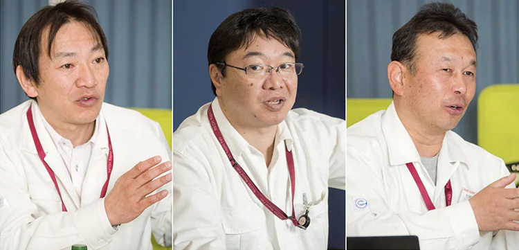 Ricoh’s 3D printing service experts include (from left) Masaru Muto, a leader in Ricoh’s Additive Manufacturing Technology Office, Koji Emoto, a senior specialist from the Additive Manufacturing Marketing Office, and Mitsuaki Sugisaki, a leader of the ES Process Engineering Office of Ricoh Industry Company, Ltd.