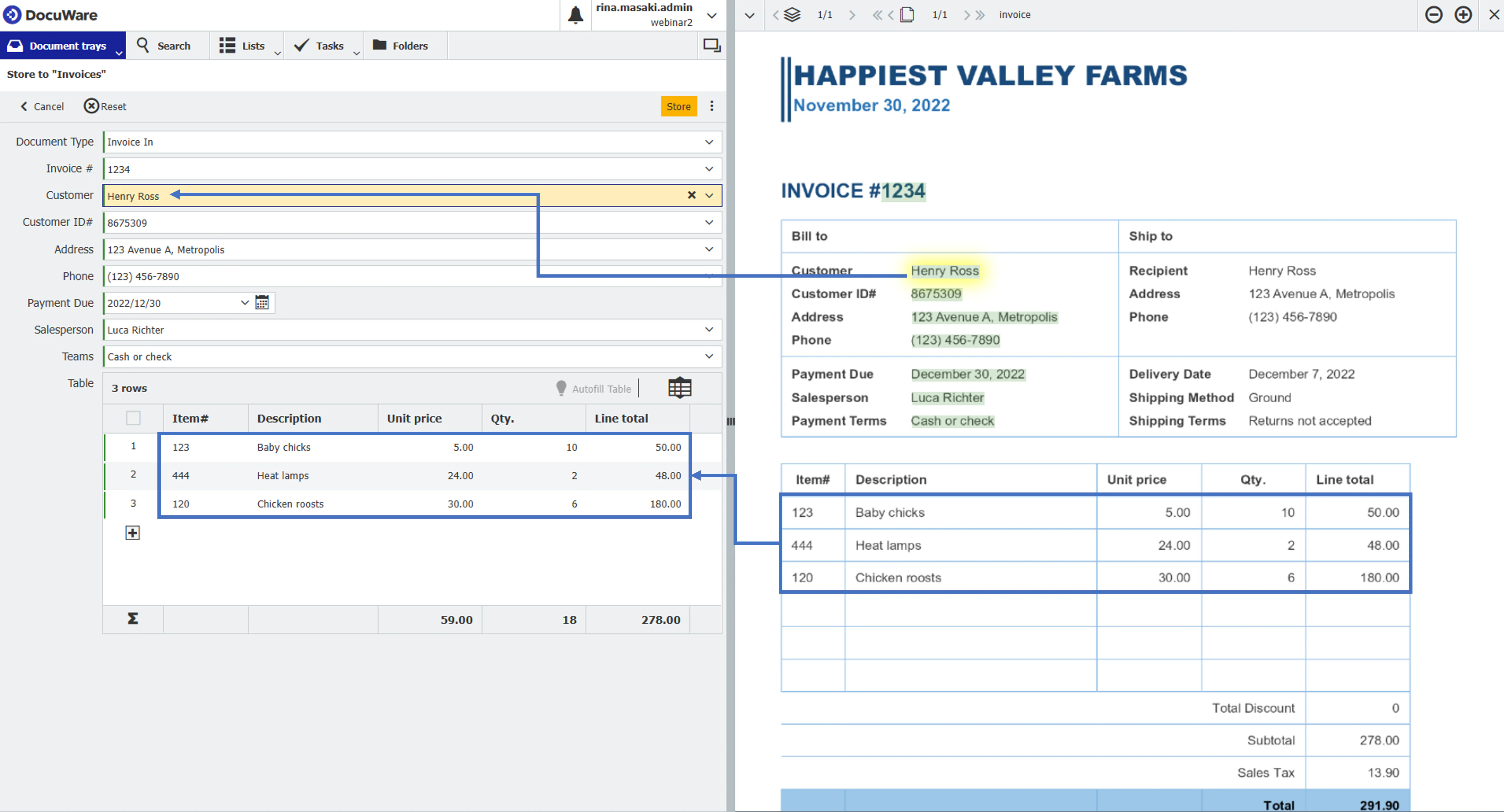 DocuWare’s Intelligent Indexing feature makes it easy for users to compare content with original documents
