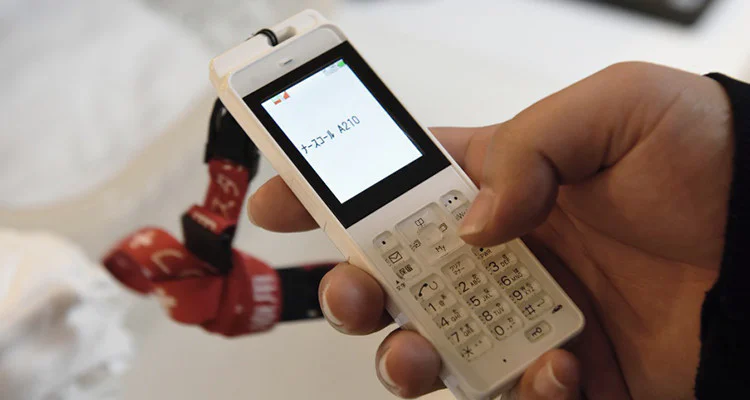 When a resident at a bed sensor system-equipped facility gets out of bed a nurse call message goes to caregivers' Personal Handy Phone system handsets. This feature resulted from facility feedback.