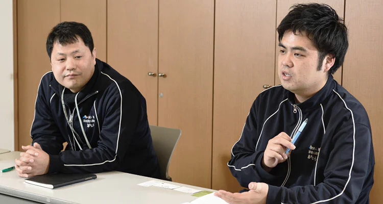 Masaki Takamatsu, Asunaro's administrative section head (left), and Akira Sakakibara, Asunaro's caregiving manager.