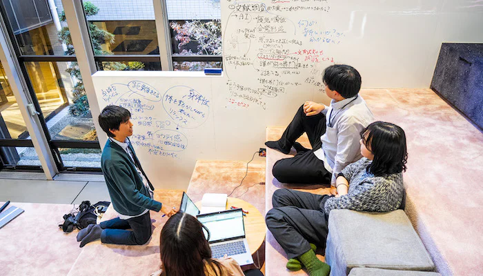 Ms. Ezoe notes that workshop participants have taken all sorts of approaches. She says that, “We saw teams using normal desks and chairs. Others gathered near the whiteboards. We also saw groups lying down to chat. I was delighted to see participants using the venue far more freely than I envisaged. They liberated themselves from conventional notions, engaging in profound discussions beyond conventional training frameworks.”