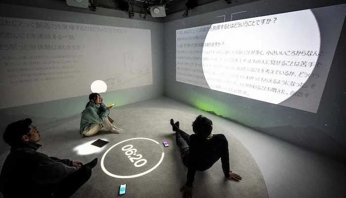 At this juncture, it seems worth overviewing workshop procedure. It is supposed to start with a preliminary assignment for participants to consider what working creatively means to them. The next step makes the workshop unique—teams share preliminary assignments using the futuristic RICOH PRISM meeting space at RICOH 3L. The company set up that space to enhance the creativity of working teams, which is in keeping with the focus of the workshops. Ms. Ezoe attended preliminary assignment gatherings. She notes, “We were able to give workshop participants hands-on experiences within RICOH PRISM as part of preliminary assignments exploring the value of unleashing unseen creativity. Engaging in team building and discussions in this context put people at ease and enhanced their interest in workshops.”