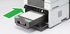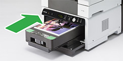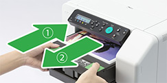 The RICOH Ri 100 can fit into a space as small as 399 x 698 mm (w x d, installation), making it one of the smallest DTG printers. The printer and its finisher can be stacked to maximize functionality without sacrificing space.