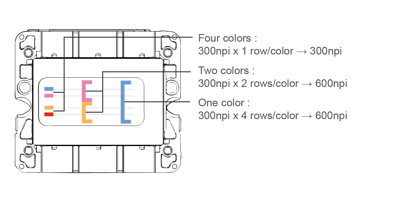 600npi(2 colors, 1 color) 300npi(4 colors)