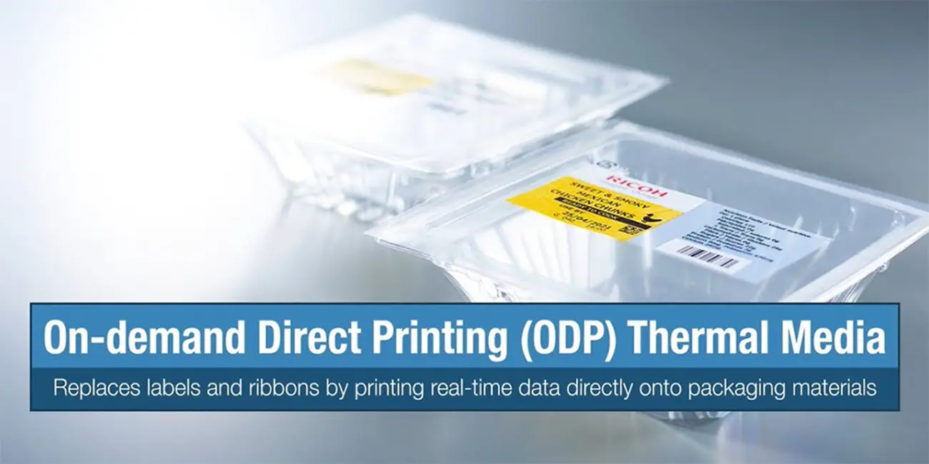 ODP (On-demand Direct Printing) Thermal Media is a Ricoh's new solution to print variable information on packages. It replaces labels and ribbons by printing real-time data directly onto packing materials.