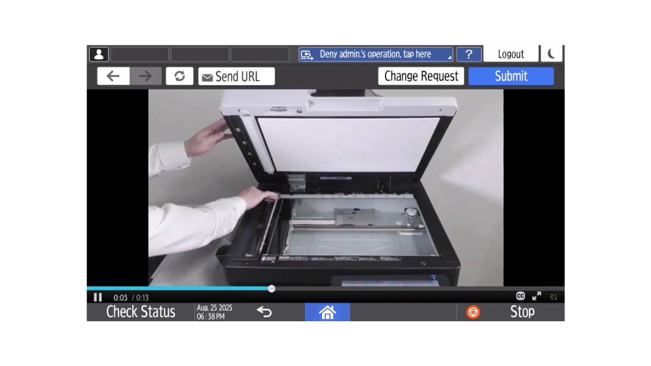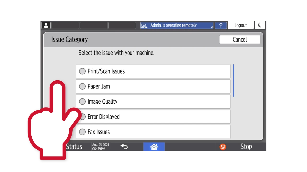 Customer Support Application allows you to easily request repairs or ask questions about how to operate the device directly from your multifunction printer.