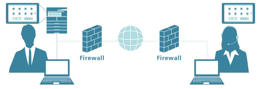 An operator can directly operate the customer’s device via the Internet to troubleshoot problems or to instruct customers on device operations. Customers don’t need to prepare a VPN or other special network configuration for this.