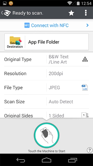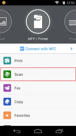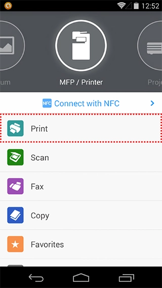 If you have an NFC-equipped Android device, by just touching the multifunction product, you can easily connect to it without having to perform any troublesome equipment registration in advance. Complete the connection by just touching the Android device on the NFC tag* attached to the multifunction product operation panel.