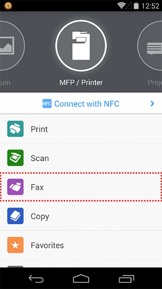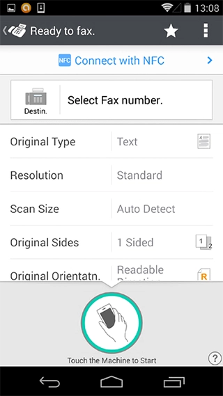 Specifying the settings on a smart device, faxes can be sent (via the multifunction product*) to fax numbers designated in the smart device address book. Settings such as document type, resolution, and paper size can be specified.