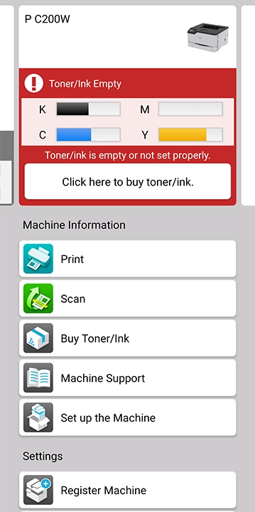 Once the network settings are completed, you can register the machine and you are ready to check its status on the home screen.