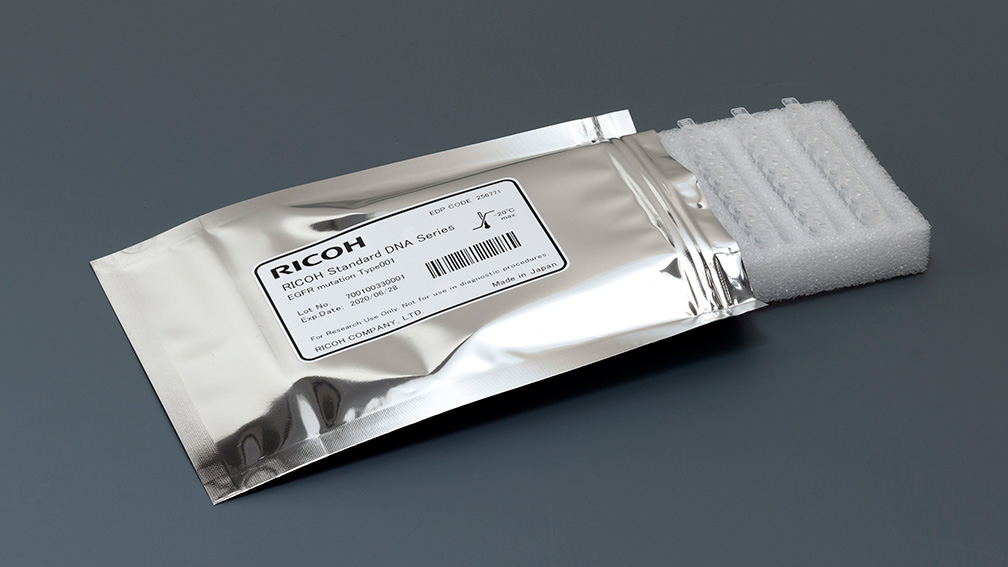 TOKYO, August 20, 2020 – Ricoh Company., Ltd. (President and CEO Yoshinori Yamashita) and DNA Chip Research Inc. (President Ryo Matoba) announced that today they will launch “RICOH Standard DNA Series EGFR mutation Type001”, a reference DNA plate*1 jointly developed as reference material*2 for use in accuracy control of bloodbased genetic testing for lung cancer. This product contributes to improving the accuracy of testing by making it possible to confirm the accuracy of highly sensitive genetic testing that detects the very small amounts of DNA molecules from cancer cells that are contained in blood from lung cancer patients. Currently, these are only available in Japan.