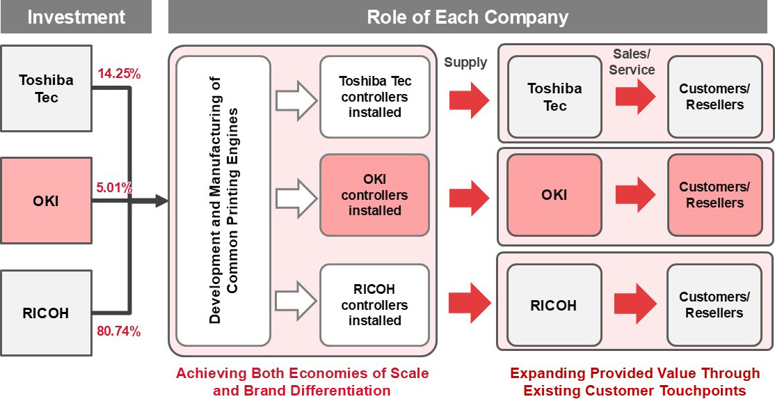 TOKYO, February 13, 2025 – Ricoh Company, Ltd. (President and CEO: Akira Oyama; “Ricoh”), ETRIA CO., LTD. (Representative Director, President and CEO Katsunori Nakata; “ETRIA”), Toshiba Tec Corporation (President and CEO: Hironobu Nishikori, “Toshiba Tec”), and Oki Electric Industry Co., Ltd. (Representative Director and CEO: Takahiro Mori; “OKI”) announce today that ETRIA, a joint venture company that was formed on July 1, 2024 to integrate Ricoh and Toshiba Tec’s multifunction printers (MFPs) development and manufacturing, will welcome a new partner, OKI. OKI is the third company to join ETRIA.