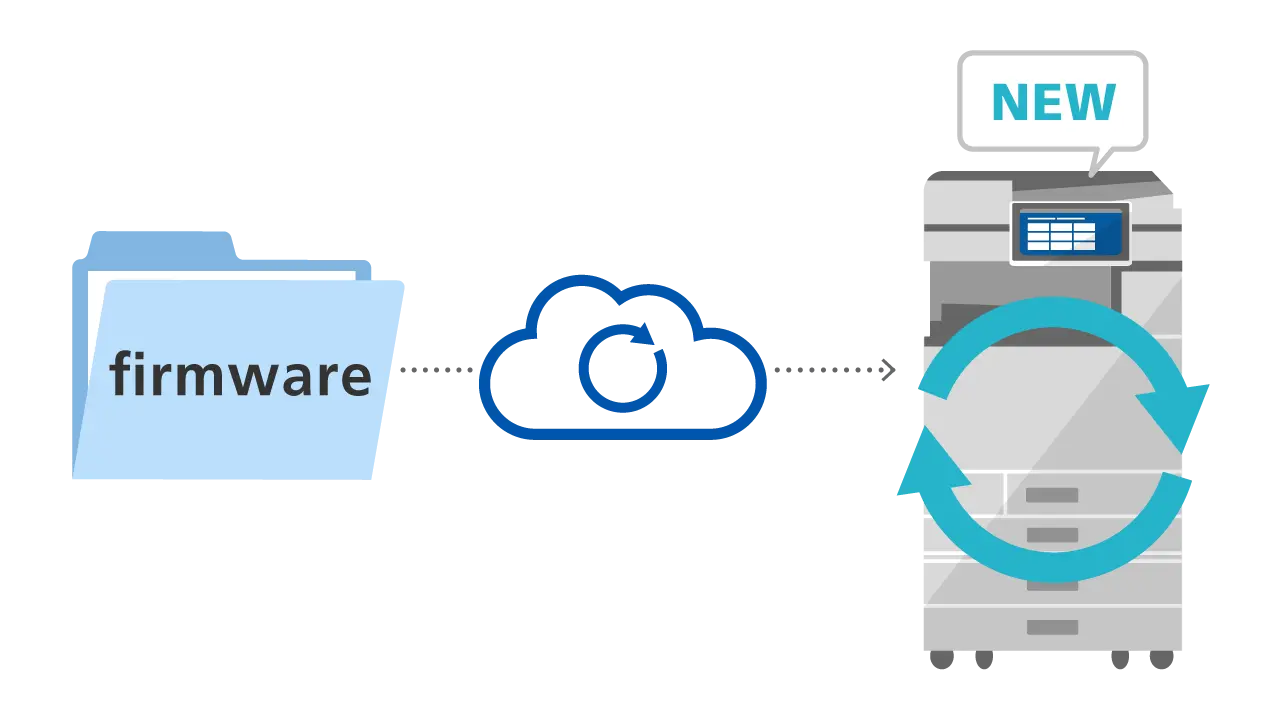 In order to keep your MFP up to date at all times, the firmware needs to be updated. MFP updates used to require a visit from a field engineer, but now our automatic update function keeps your MFP updated with the latest security settings for your peace of mind, and ensures the most convenient possible experience with your MFP at all times.