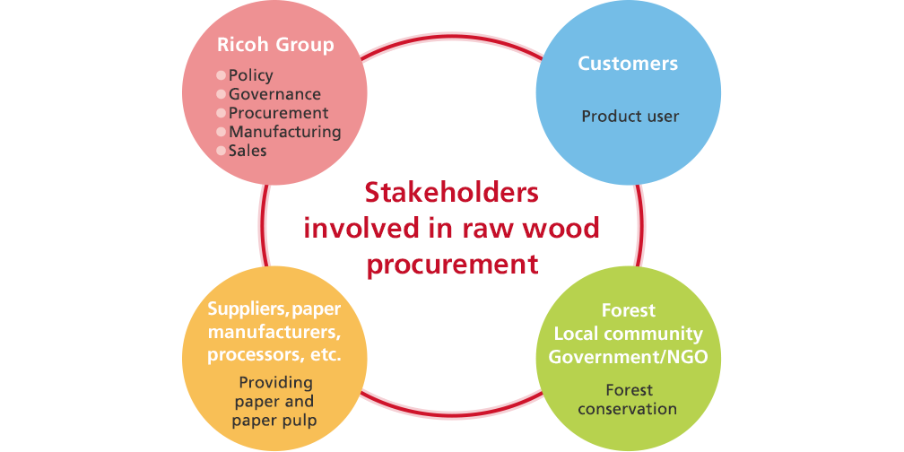 From the viewpoint of global environmental conservation and biodiversity protection, this provision must be established to confirm that the wood raw materials used in Ricoh brand products and their accessories are legally obtained with consideration for the sustainability of the place of origin in environmental and social aspects prior to the decision of procurement.