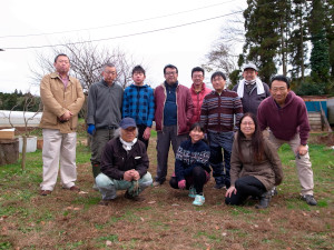 The “Ricoh Chiba Fureai-no-Mori” forest conservation activities started in 2004, based on Chiba Prefecture's Satoyama Ordinance, when an agreement was made with a landowner who was having trouble taking care of a cedar forest overgrown with bamboo. Since then, Ricoh's environmental volunteer group, Chiba Fureai no Mori Conservation Society, has continued its activities with three main objectives: (1) to improve the use of the forest by managing weeds, (2) to secure space and build recreational facilities, and (3) to use wood removed in the thinning process for materials for the recreational facilities. In spring, we plant potatoes while cherry blossoms are in bloom; in summer, we clear weeds, observe insects, and harvest summer vegetables; in fall, we organize forest thinning and cultivate shiitake mushrooms; and in winter, we pound rice cakes and other activities.