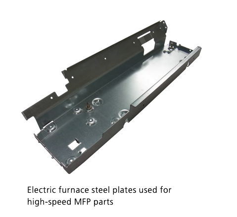 Until then, plates from electric furnaces were mostly for construction material because of their strength. Ricoh specified the materials requirements for office equipment, with Tokyo Steel developing materials for plates that are just 2mm thick or less, improving electrical conductivity, and enhancing pressing and forming. Tokyo Steel employed its advanced impurity removal and rolling technologies to develop and produce high-performance steel plates for office equipment.