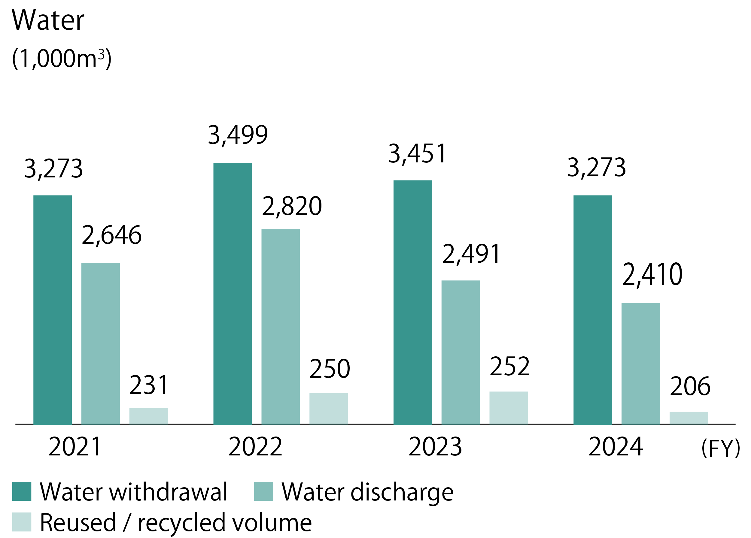 As the world's population increases and economic development progresses, the escalation of problems related to water stress and water pollution are becoming social issues. Consequently, corporations are expected to utilize water resources effectively, reduce consumption, and prevent pollution.