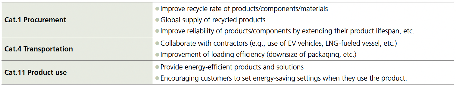 For other achievements related to realizing a Zero-Carbon Society, please see below. InitiativesInitiatives for Scope 1 and 2 emissions reduction