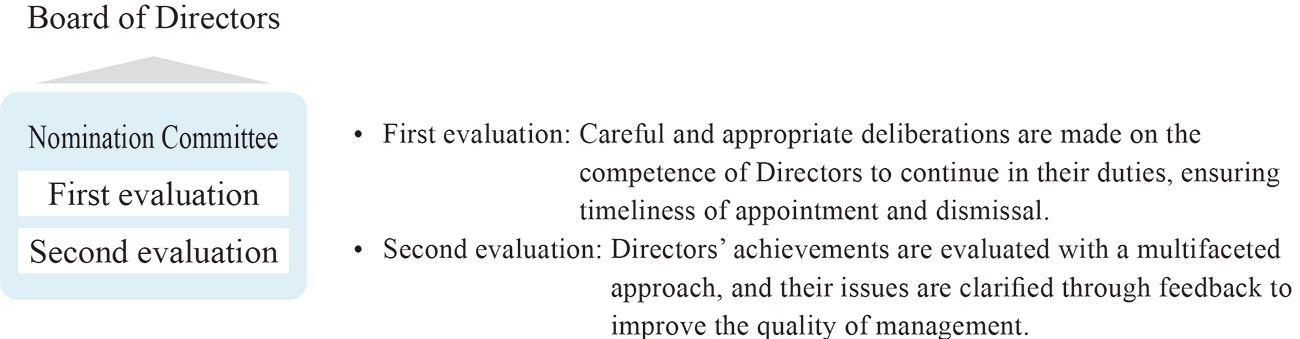 CEO Oyama, who took office on April 1, 2023, was evaluated over a period of approximately nine months from his date of appointment to the second evaluation date during fiscal 2023. The details of this evaluation were reported to the Board of Directors by the Chairperson of the Nomination Committee, and then feedback was provided to Mr. Oyama.