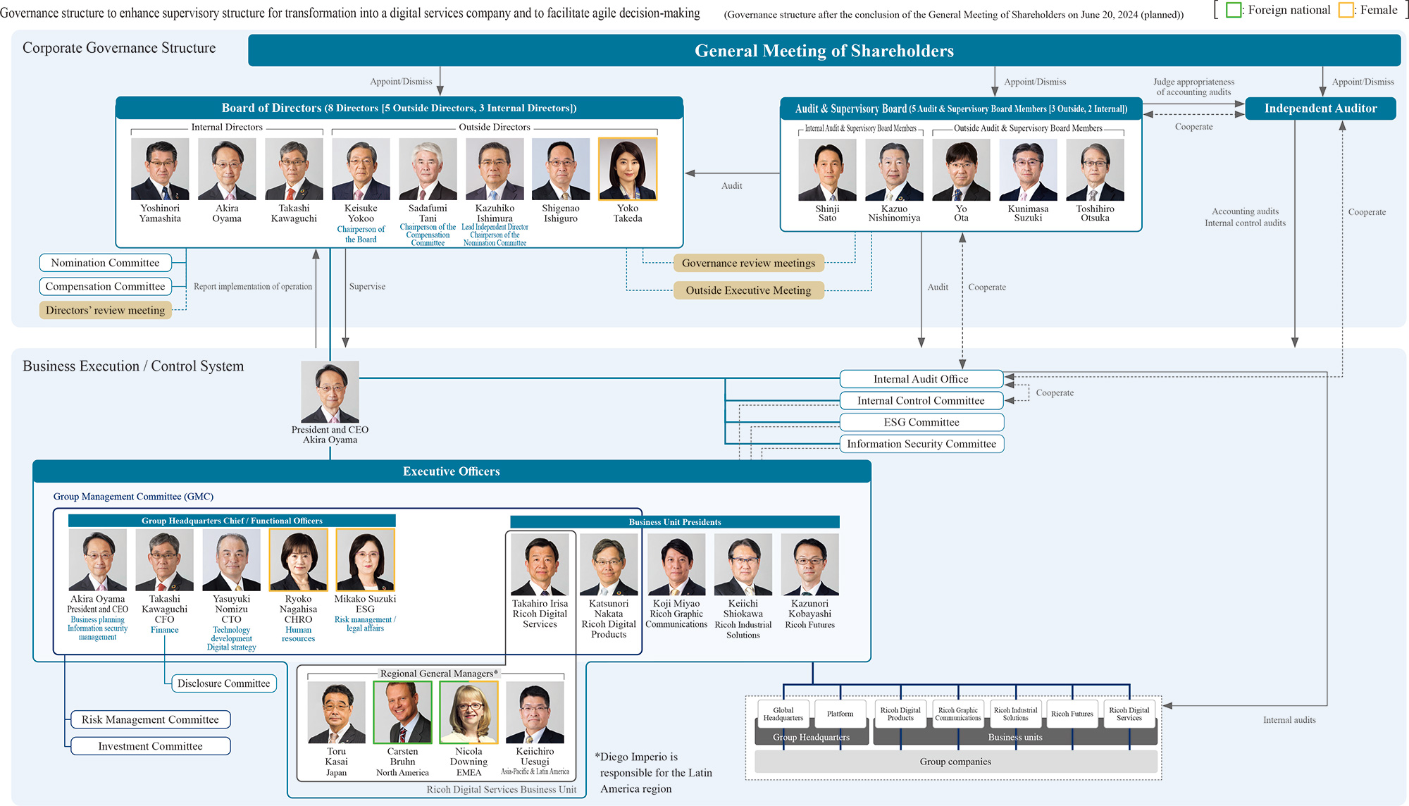 The Corporate Officers consist of 14 members, including 2 foreign nationals and 2 women.