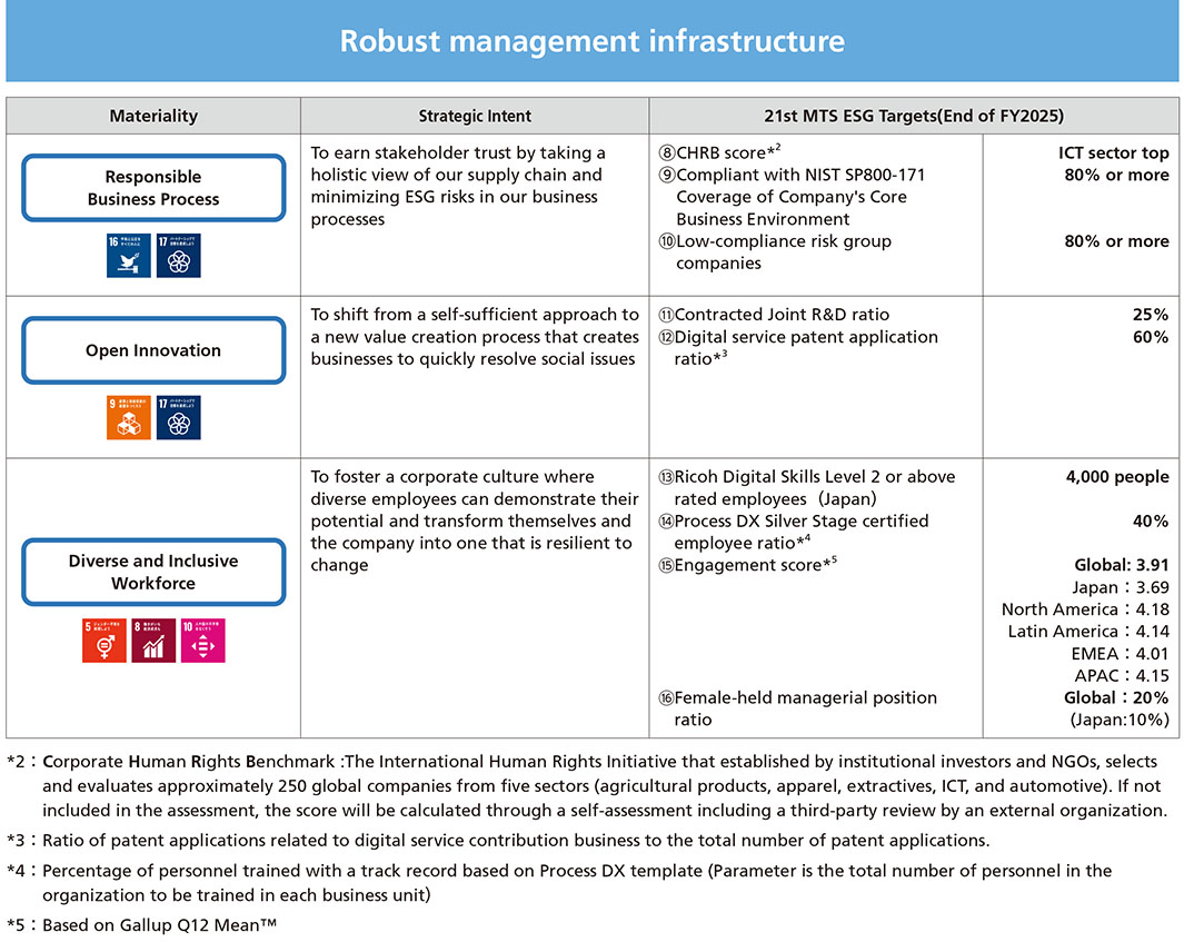 ESG targets in 21st Mid-Term Management Strategy (End of FY 2025) |