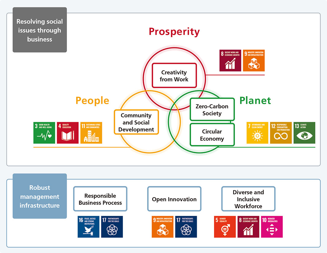| Zero-Carbon Society | To decarbonize the entire value chain and create business opportunities by contributing to carbon neutrality | |