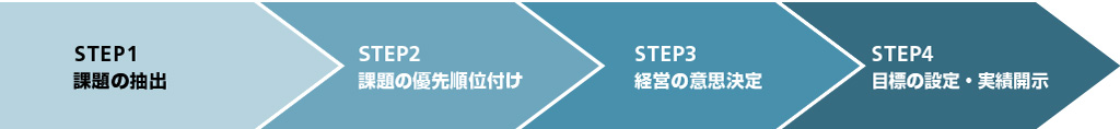 Prioritize the identified issues based on international guidelines such as the SDG Compass, GRI standards, and the concept of double materiality, as well as management philosophy, management and business strategies, opinions from external stakeholders, and priority management risks in line with the risk management system. The drafts of materiality and ESG targets are then prepared.