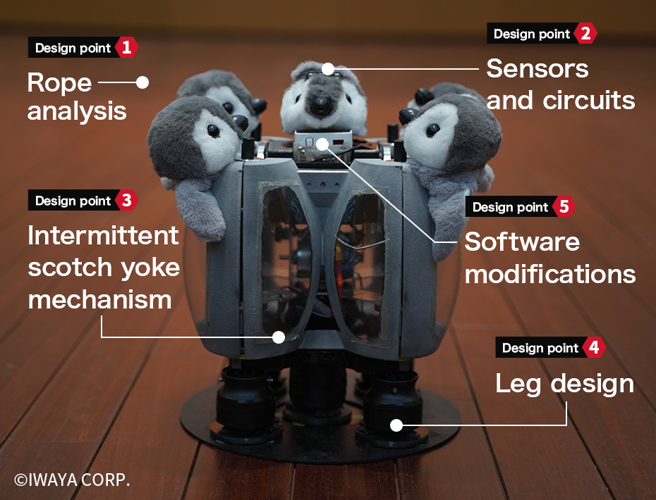 To achieve the function of skipping rope quickly and in large numbers, the behavior of the rope was thoroughly analyzed to derive rope-spinning conditions with minimal variation and the required specifications for the penguin.