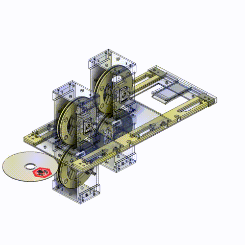 The materials used on the front and backside of a DVD are different. Slipping occurred between the DVD and rollers as the roller rotational speed increased, making the DVD unable to fly far or a consistent distance. The paper transport mechanism of multifunction printers was incorporated; the DVD was pinched between upper and lower rollers, and pressure was applied to the upper rollers using springs.