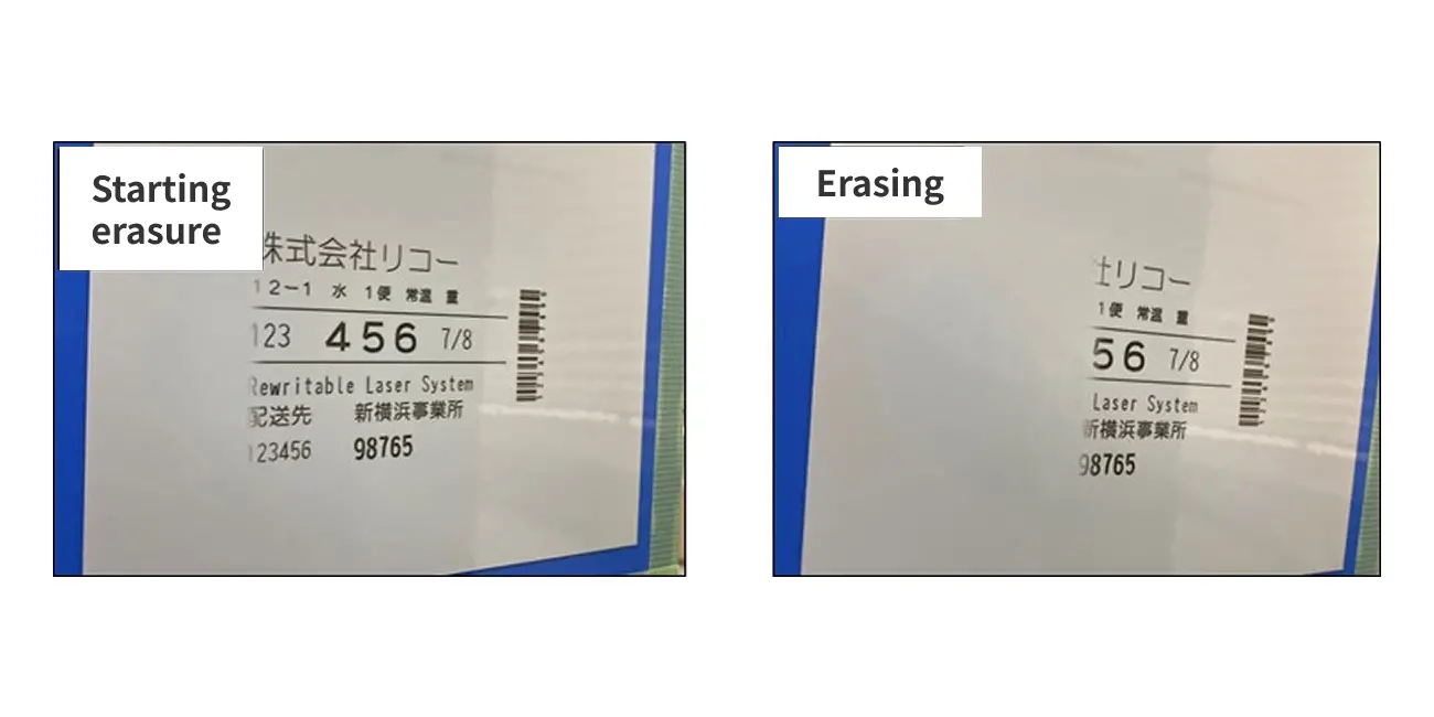 Fig. 5: Erasing with Ricoh rewritable laser system (laser is invisible light)