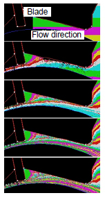 Figure 5: Computer simulation results of developer powder passing around the blade in a narrow channel