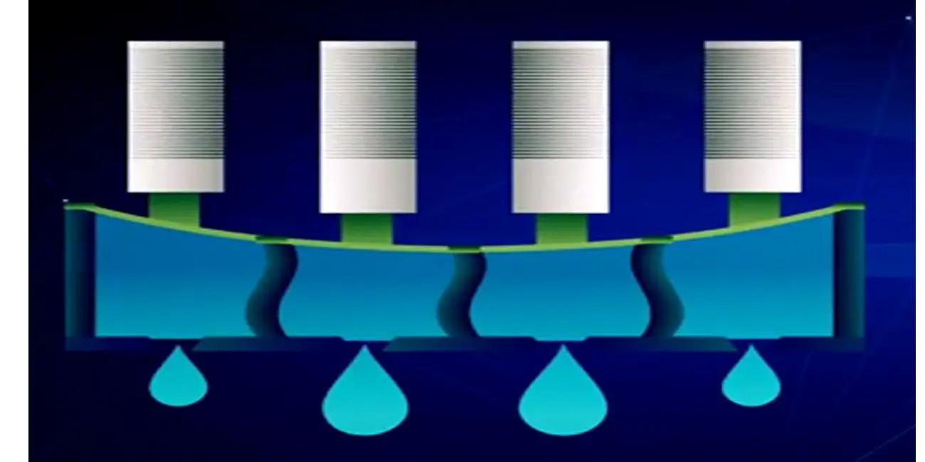 Ricoh's proprietary bi-pitch laminated piezo actuator enables stable, accurate control of ink discharges.