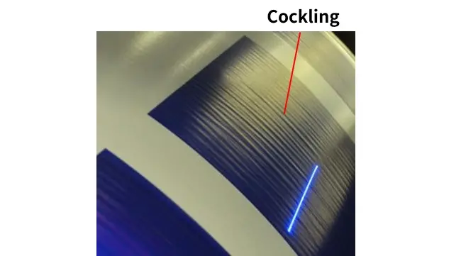 In a conventional drying system, paper passes around a large-diameter heating roller, which is surrounded with metal hot air blowers that are used to dry the ink (Figure 2). When a dense image or a thin sheet of paper is used, the sheet tends to stretch and shrink unevenly, resulting in a cockle (Figure 3).