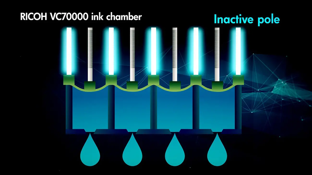 Ricoh has developed a new drying technology for the RICOH Pro VC70000 high-speed full-color inkjet continuous form printing system. Even when a dense image is printed or a thin sheet of paper is used, the technology prevents the paper from cockling. With its space-saving and power-saving design, the RICOH Pro VC70000 features greatly enhanced printing speeds and image quality.