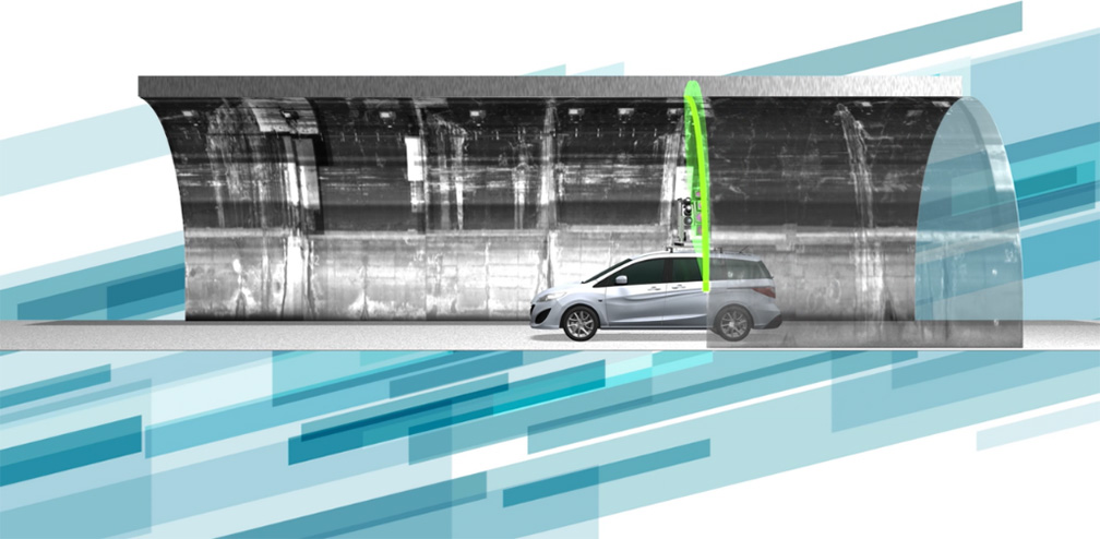 Conventional tunnel inspection methods require traffic flow to be stopped and special vehicles are required for high-lift work, with the individuals on board visually inspecting the surfaces. The task poses danger and is a significant workload. Some projects have started to use specially adapted vehicles, but this method is still costly.