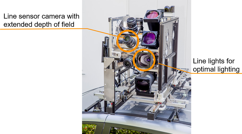 This line sensor measurement system is compact enough to be installed on a standard motor car and can easily be detached, making it easy to transport to other locations.