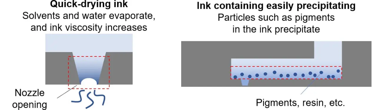 Yet demand is high for inks with special features, such as quick-drying inks and inks containing materials that easily precipitate. Accordingly, inkjet printheads must handle such specialty inks while delivering reliability. They are also required to waste less ink. Ink should be disposed as infrequently as possible to minimize waste and extend maintenance intervals.