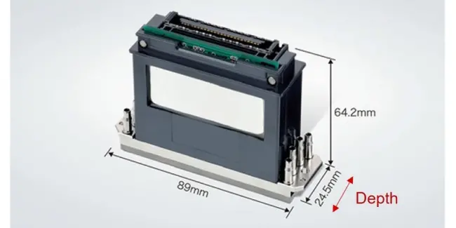 The Ricoh circulation printheads are characterized by the 3D layout of the internal ink path, which keeps the printhead depth small. The RICOH MH5421F/5421MF printheads feature this design and are as small as the conventional RICOH MH5421 printhead, which does not have a circulation structure. This means that the RICOH MH5421F/5421MF printheads can be installed on a mounting surface designed for the RICOH MH5421 printhead.