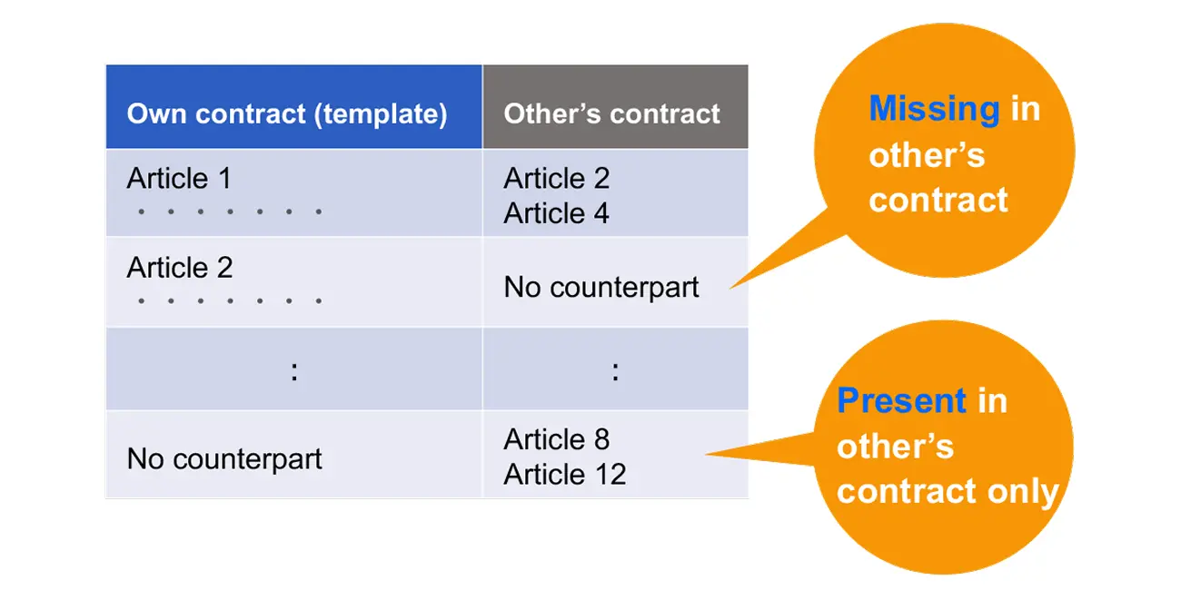 Deep Alignment compares two contracts and aligns articles that are missing in one document and those that exist only in the other