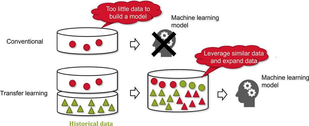 Transfer learning is defined as “a method of utilizing knowledge of a task as well as knowledge of another similar task to improve the accuracy of a task.” Most conventional transfer learning methods are challenging to use in manufacturing, because both tasks have the same data structure and require advanced knowledge of machine learning.