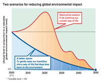 To conserve the global environment and make our society sustainable, Ricoh has set a long-term target of reducing environmental impacts resulting from the groups’ economic activities to one-eighth the fiscal 2000 level by 2050.(Click here for details)